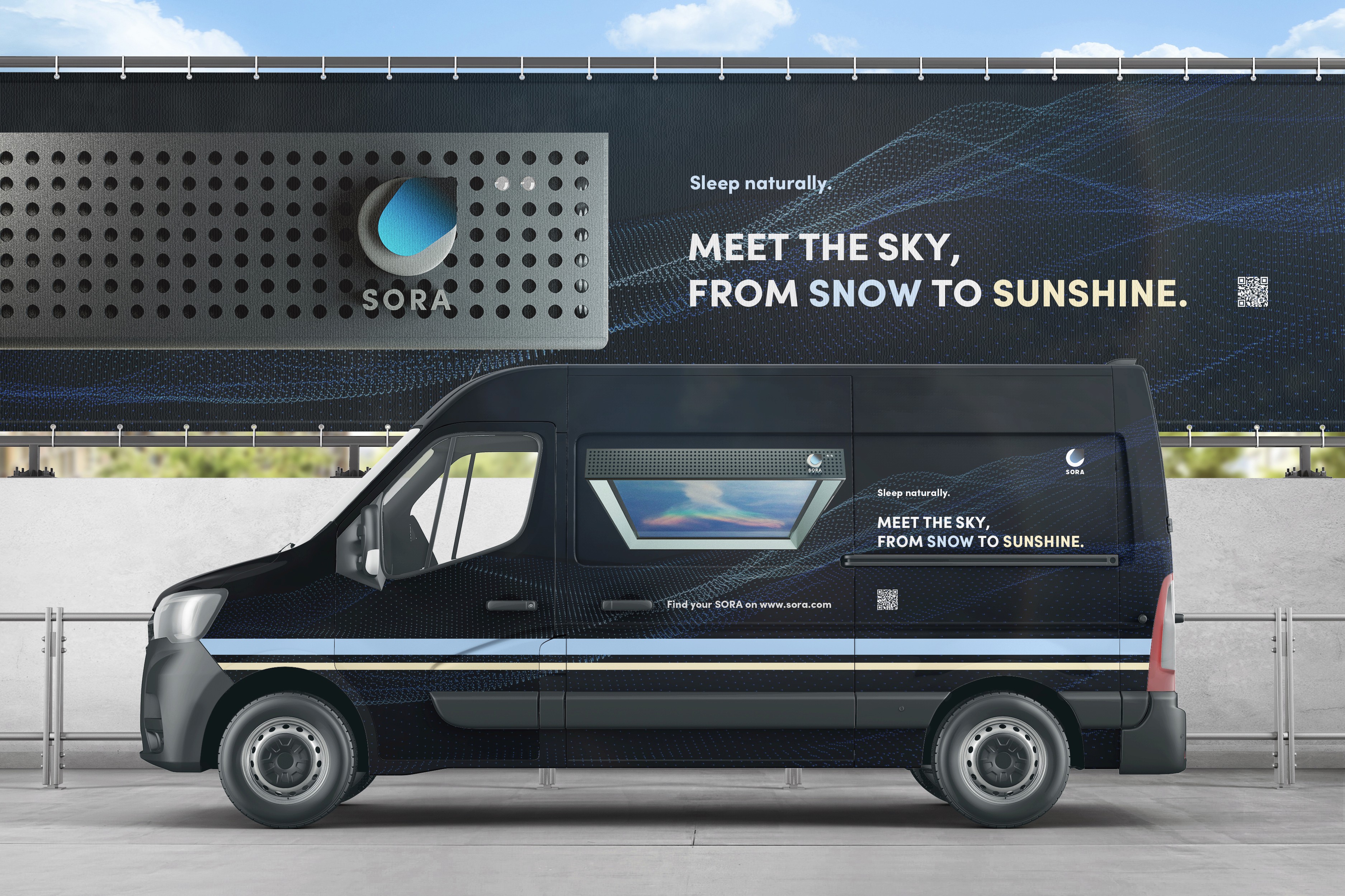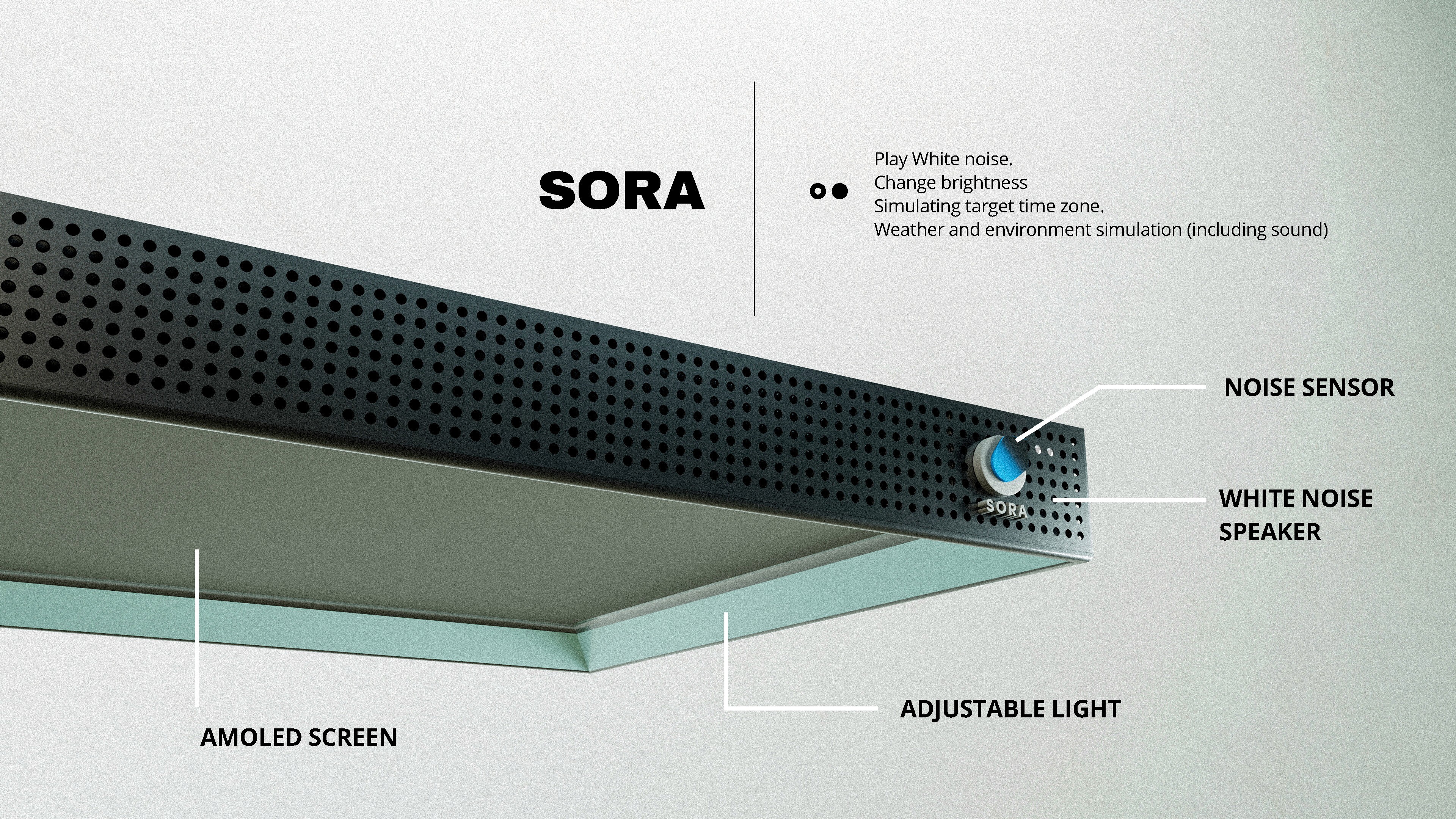 Sora, An indoor sleep skylight that helps create the optimum sleep environment in your home. The app allows you to simulate environments from the geography of your choice to wake up to or fall asleep in.